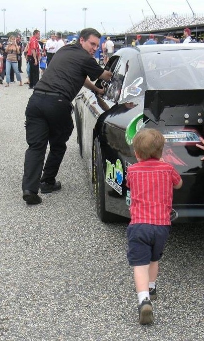 Bobby was strapped into his bandolero and ready to head out for his first race at Kingsport Speedway. We had already prayed together and I was standing next to the car waiting for the crew to push him out of his pit stall. Bobby reached his gloved hand out the window to grab my hand and I squatted down for one last “go get ’em” before he headed out. Instead, I got something totally different.