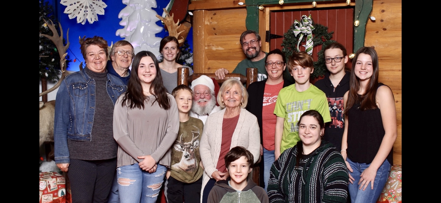 November: Kris went with Bill to the final Phoenix Championship Race and THEY WON!!, Allison competed at the WHES championship weekend, Elaina turned 14, Alex turned 12, family visited for Thanksgiving, Kris went on a preaching planning retreat, Alex sang with his school choir at a local festival, annual family photo with the Bass Pro Santa, Bill and Kris left for Nashville for the NASCAR awards banquet